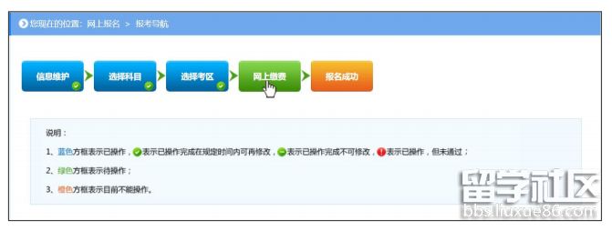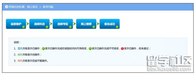 (2)報考流程中“信息維護”功能模塊變?yōu)樗{色,代表當前流程已完成。