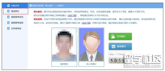 10、修改照片 報名期間考生可自主修改個人證件照片,具體操作步驟如下: