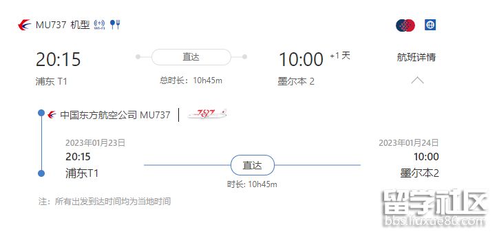 東航已經確認將在近期增加中澳往返直飛航班,其中從上海浦東直達墨爾本的東航MU737次航班已經于1月23日起復航,目前已經可以查詢到機票信息。這趟航班將恢復到每周三班,上海起飛時間分別為每周的一三五,并與次日執(zhí)飛墨爾本至上海的MU738航班。