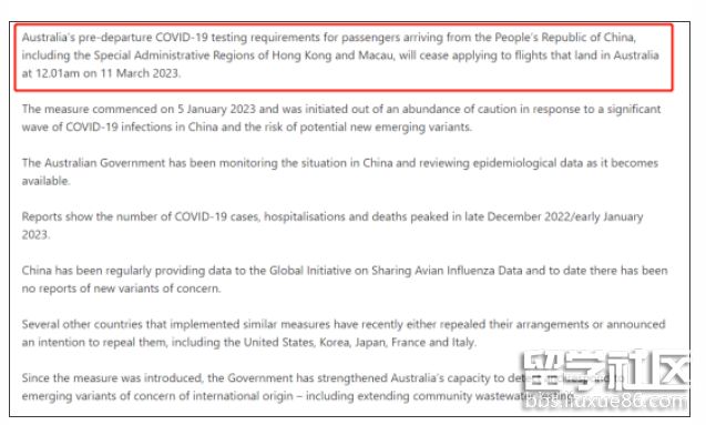 澳洲政府官宣‘自2023年3月11日凌晨12:01起,入境澳洲將不再要求COVID-19檢測證明’!自今年1月5日,澳洲政府宣布入境要求48小時核酸檢測證明以來,增加了返澳同學們的行前準備工作。