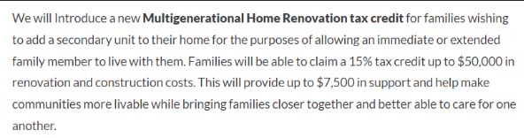 1月1日也標(biāo)志著這項(xiàng)新免稅政策的開始。該政策允許申請人將符合條件翻新費(fèi)用的15%(最高為50,000加元)進(jìn)行抵稅,以幫助一些老年人或殘疾人與親戚生活在一起。