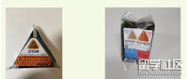 上面這種三角包飯(????) 是韓國便利店中最常見的一種即食品,好吃又實惠,種類繁多,早一點去便利店的話就能買到像上面圖二這種兩個裝的三角包飯,兩個裝的比單獨買的要便宜一些,味道是一樣的哦。