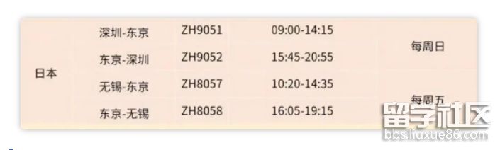 日本航班主要集中在每周五和周日,周五是無錫-東京,周日是深圳飛東京