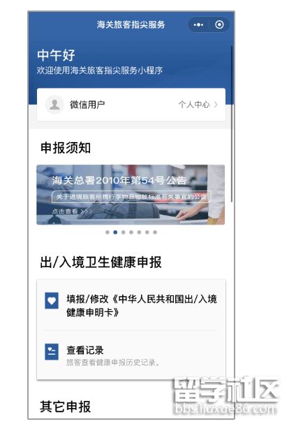 海關(guān)旅客指尖服務(wù)小程序頁面