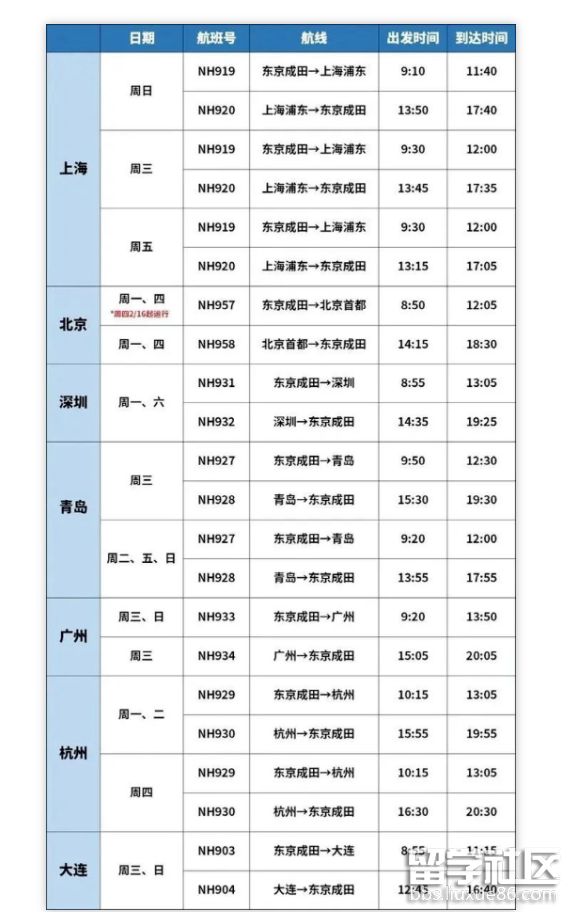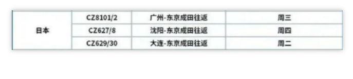 飛往日本的航班,周二大連-成田往返,周三廣州-成田往返,周四沈陽-成田往返。