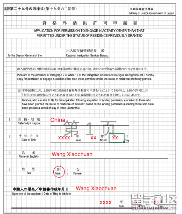 2. 如果是第一次來日本并且有計(jì)劃打工的同學(xué),需要填寫資格外活動(dòng)許可申請(qǐng)書獲得打工許可。