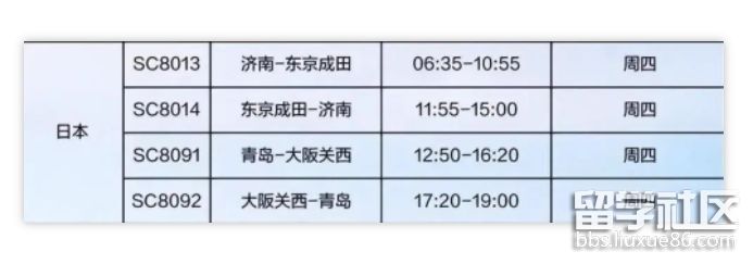山東航空航班主要是每周四,一共兩班,一班是濟(jì)南-成田,另外一班是青島-關(guān)西。