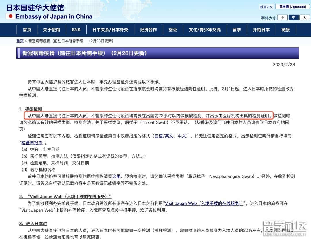 自3月1日0時(shí)(日本時(shí)間)起,從中國(guó)大陸直接飛往日本的人員,不管接種過(guò)任何疫苗在搭乘航班時(shí)均需持有核酸陰性證明。此外,3月1日起,進(jìn)入日本時(shí)所做的檢測(cè)改為抽樣檢測(cè)。入境時(shí)不再需要在機(jī)場(chǎng)等候,如檢測(cè)為陽(yáng)性也可以居家隔離。