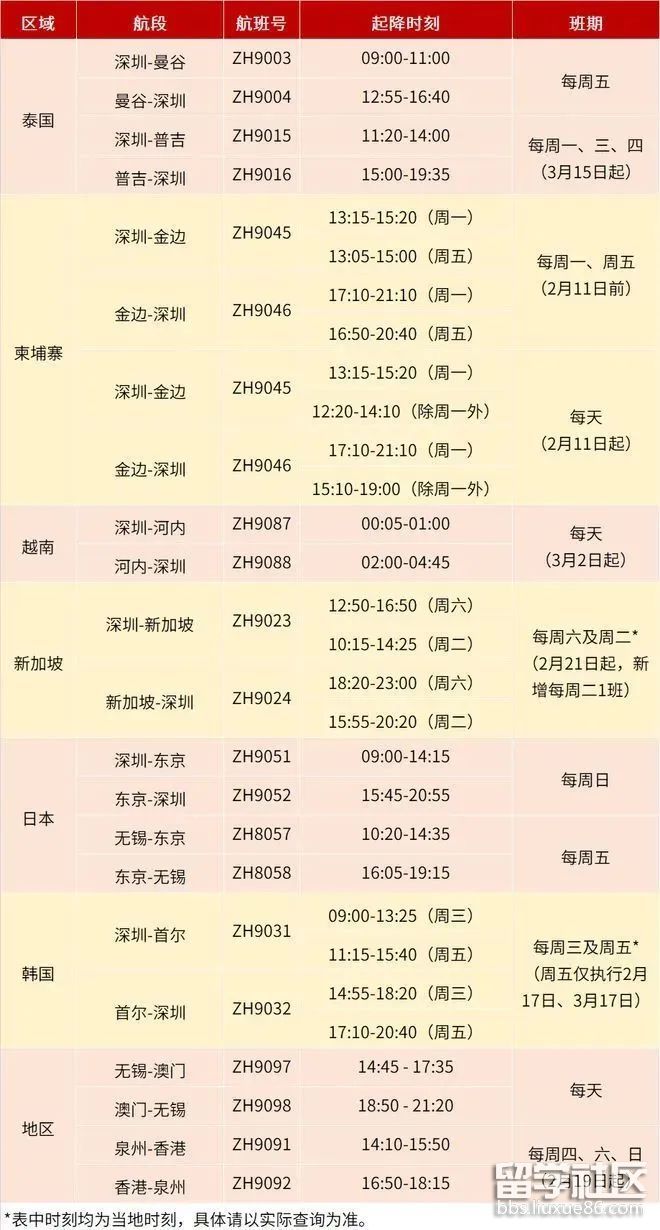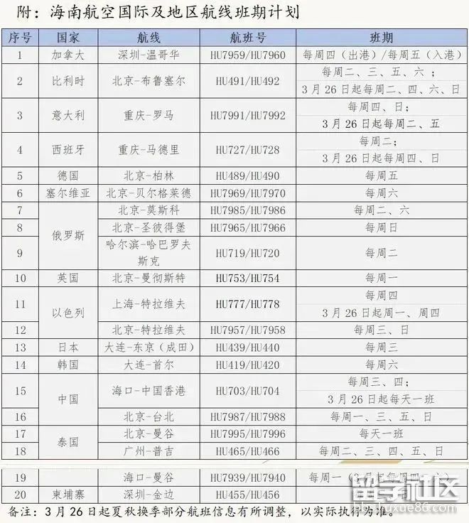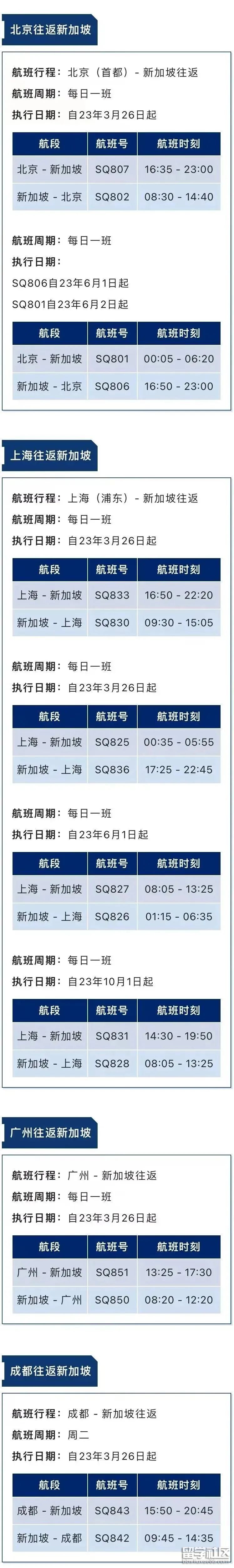 3月新增多個(gè)航班,國(guó)航新加坡、迪拜、雅加達(dá)航線近日新增多個(gè)航班,以下表格標(biāo)紅班期為新增航班: