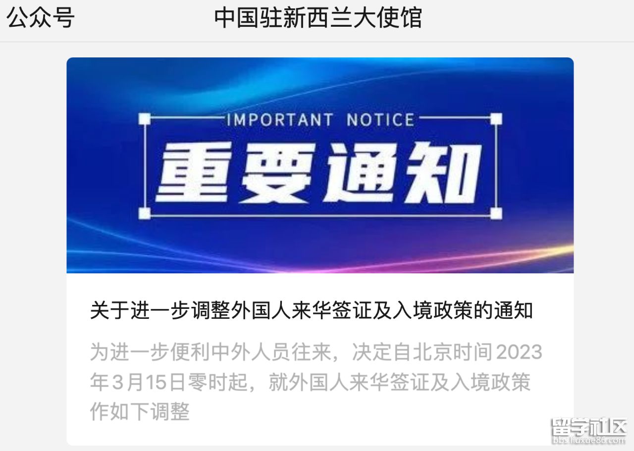 中國(guó)駐新西蘭大使館發(fā)出《關(guān)于進(jìn)一步調(diào)整外國(guó)人來(lái)華簽證及入境政策的通知》。