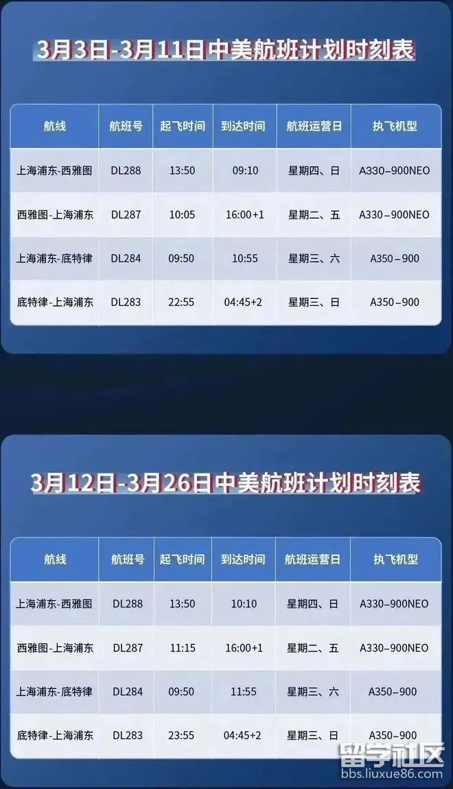 達(dá)美航空自2023年3月3日起取消首爾技術(shù)經(jīng)停正式恢復(fù)中美直飛航線,涉及上海浦東=西雅圖、上海浦東=底特律航線,最新時(shí)刻表如下: