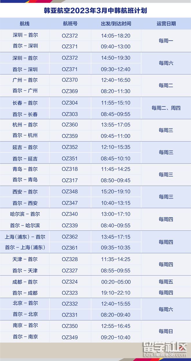 2023年3月,韓亞航空共運(yùn)營(yíng) 15 班中韓直飛航班。