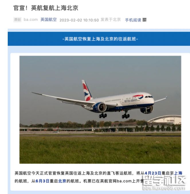 英國航空今天正式官宣恢復(fù)英國往返上海、北京的直飛客運(yùn)航班啦!
