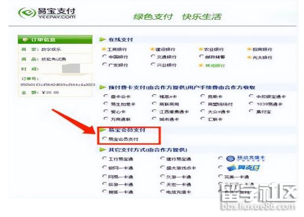 建議選擇“易寶會(huì)員支付”后,點(diǎn)擊“易寶支付”。