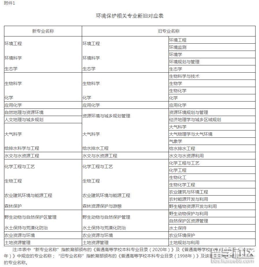 附件:1. 環(huán)境保護相關專業(yè)新舊對應表