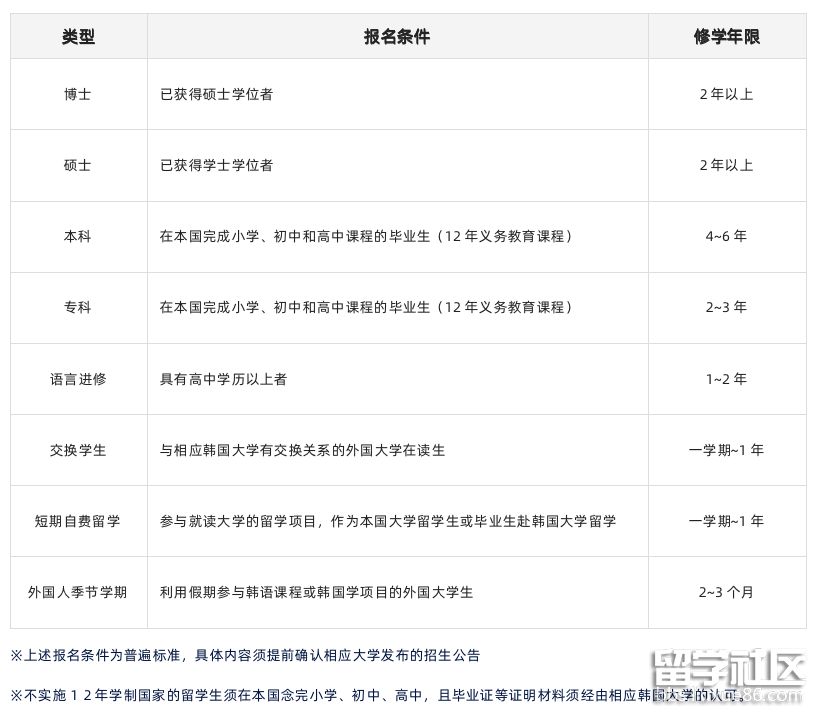 新入生:韓國本科是4年制,個(gè)別醫(yī)學(xué)類和建筑學(xué)專業(yè)可能為5年。