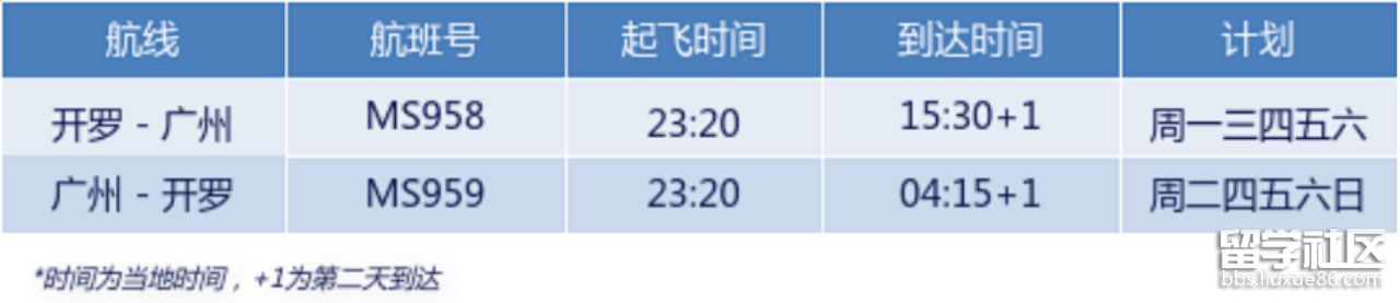 自3月27日起,埃及航空公司廣州出發(fā)的航班將增加至每周五班。埃及航空增班后具體航班排期如下: