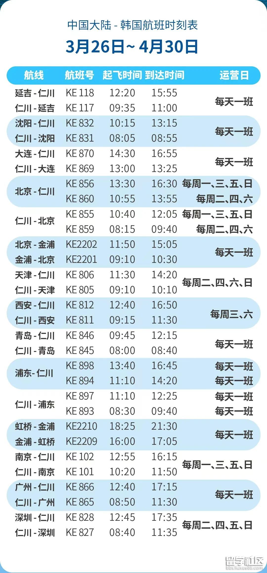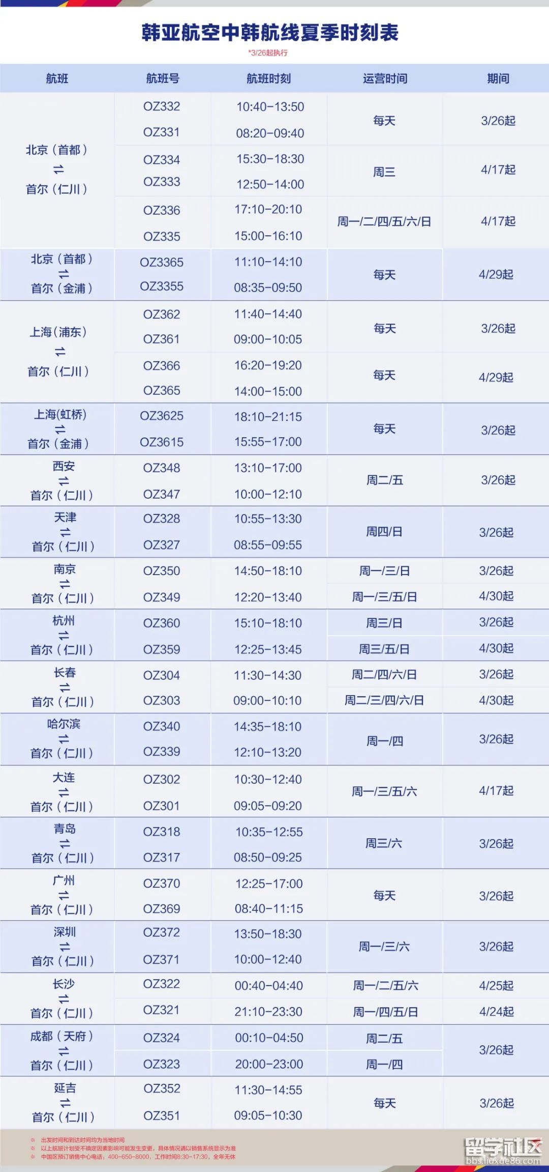 自2023年3月26日起,韓亞航空中韓航線(xiàn)大幅增班,23年夏秋航季航班計(jì)劃更新如下: