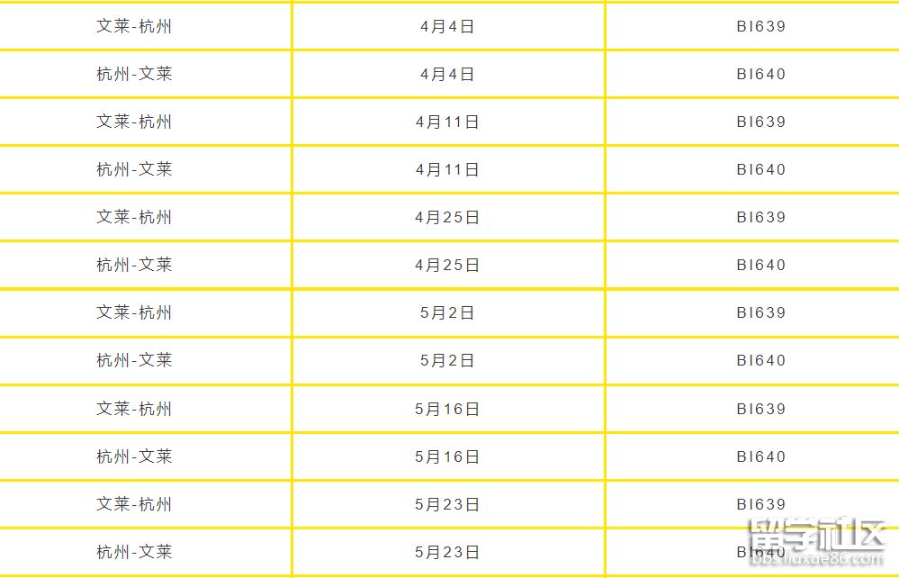 2023年4-5月,文萊-杭州之間航班運(yùn)營(yíng)時(shí)刻表更新如下: