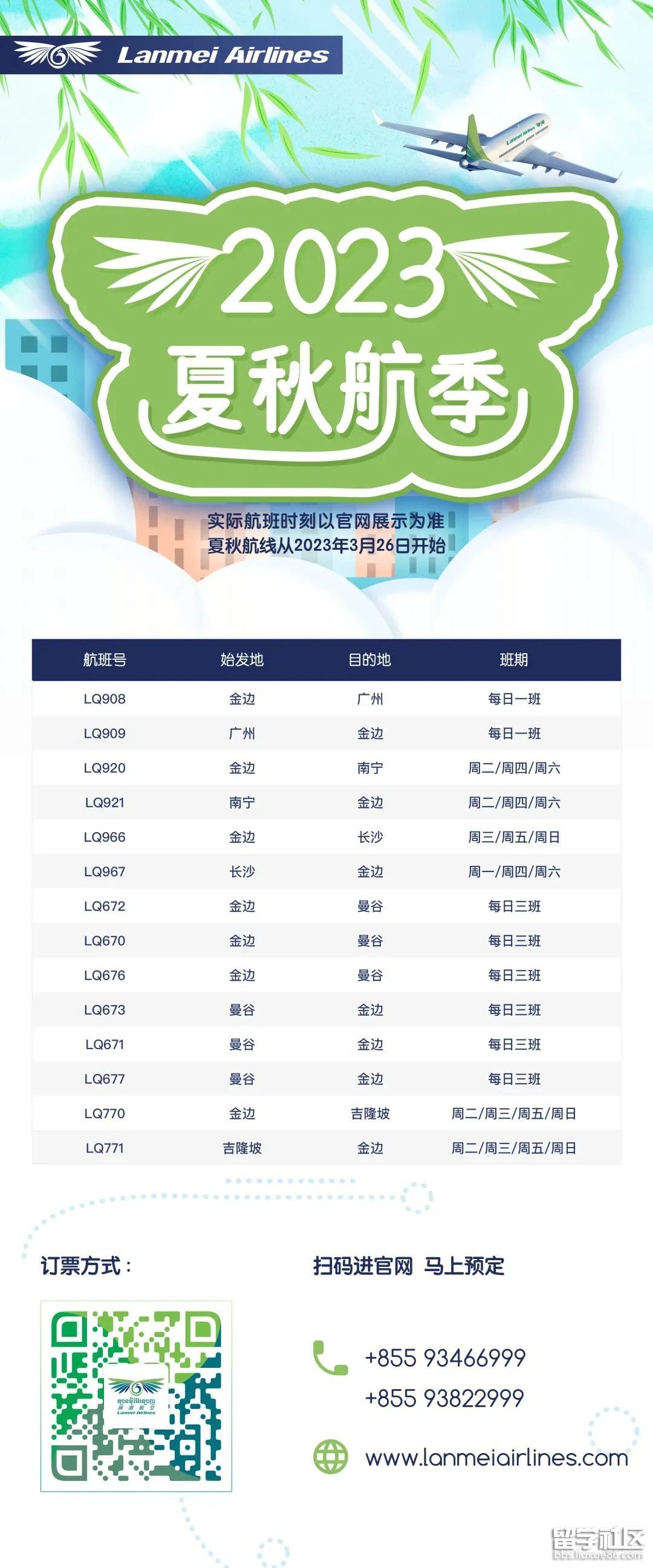 瀾湄航空夏秋全航線(xiàn)航班時(shí)刻表公布如下: