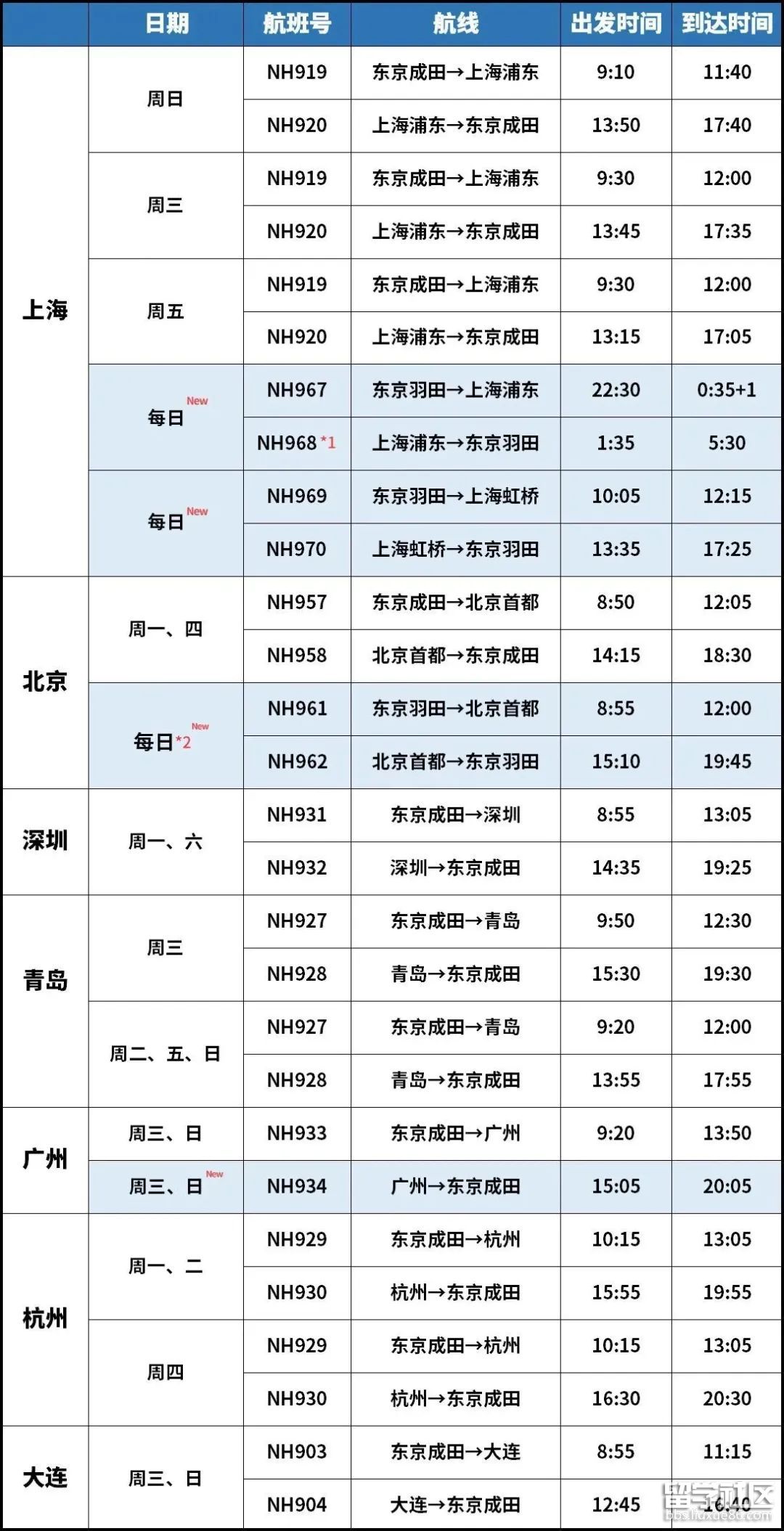 *1.上海浦東-東京羽田(赴東京羽田單程):4月2日起運(yùn)行