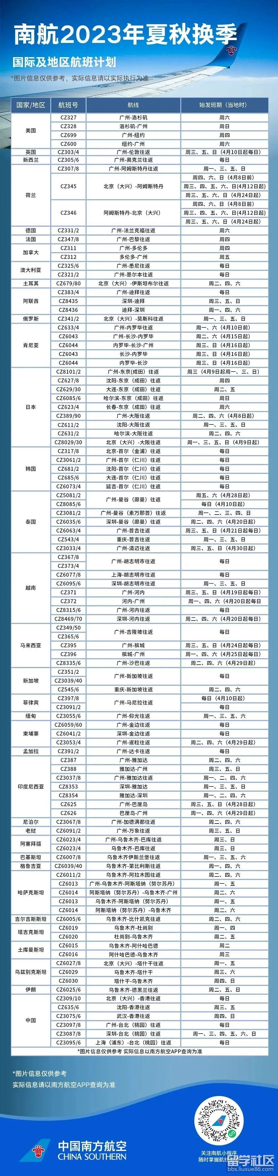 自3月26日起2023年夏秋航季開(kāi)啟,換季后南航計(jì)劃執(zhí)行的國(guó)際及地區(qū)具體航班計(jì)劃如下: