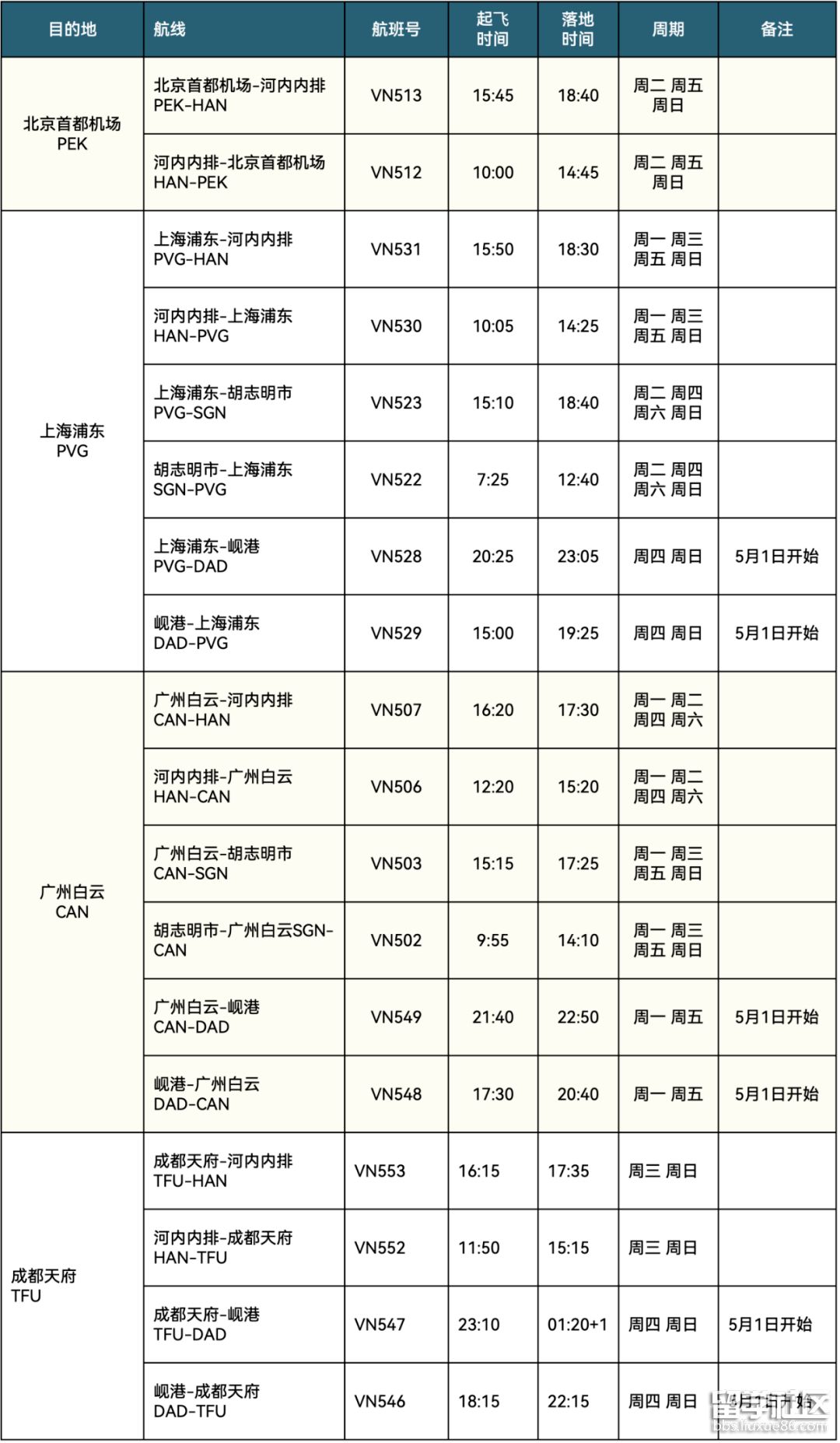 越南航空于3月起執(zhí)行2023年夏季航班時(shí)刻表,3月26日之后的中國(guó)往返越南常規(guī)路線(xiàn)具體安排如下: