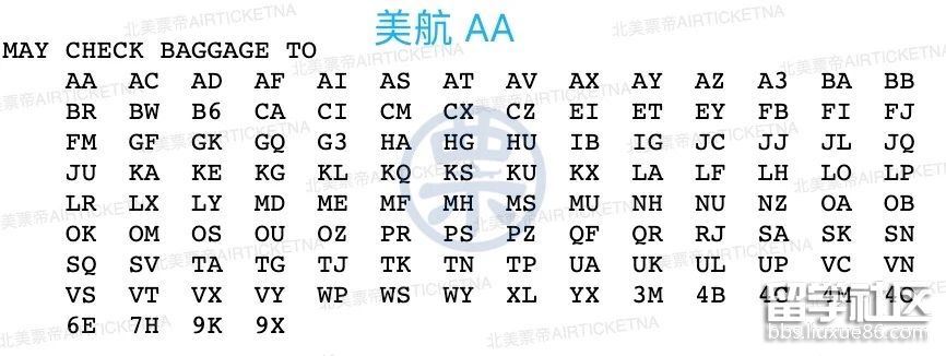 (固然美航AA有眾多的行李直掛協(xié)議伙伴,但原則上AA等寰宇一家伙伴不給非聯(lián)程機(jī)票直掛。)
