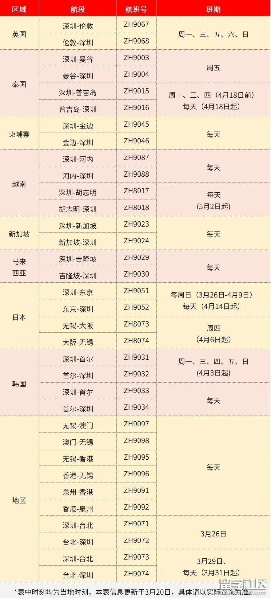 新航季,春秋航空國(guó)際/地區(qū)航線(xiàn)具體時(shí)刻表如下:
