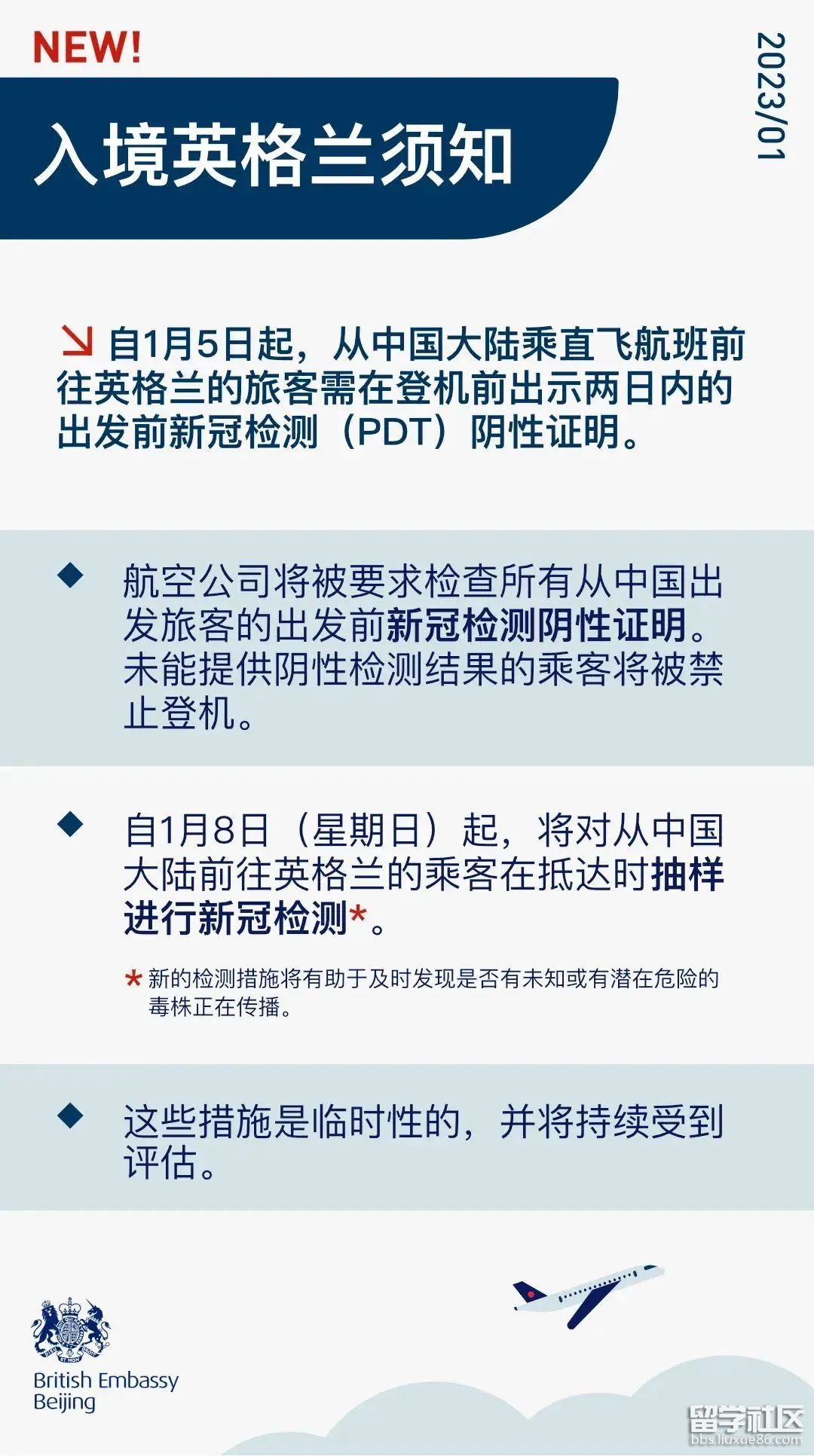 英國政府官網(wǎng)就來自中國大陸的旅客發(fā)布了入境最新細則:從2023年1月5日起,從中國大陸抵達英格蘭需要出示兩日內(nèi)新冠檢測陰性結(jié)果。