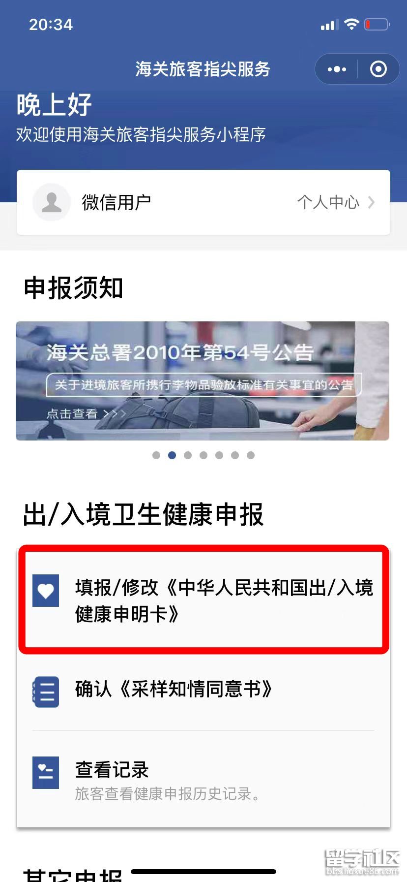 02.選擇“填報/修改《中華人民共和國出/入境健康申明卡》”。