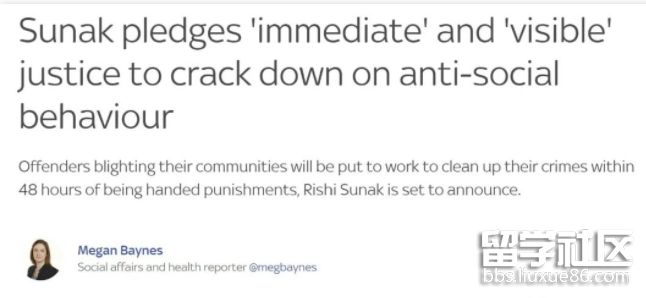 英國首相蘇納克即將推出新舉措,改善社會治安