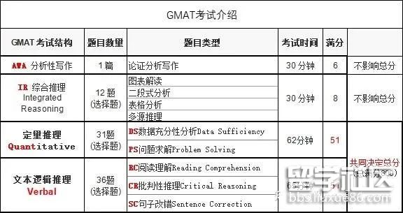 不同于中國(guó)學(xué)生傳統(tǒng)考試科目,GMAT是一項(xiàng)全英文考試,主要考察學(xué)生的邏輯分析能力和商科思維,科目分為四科:Verbal(語(yǔ)文)、Quant(數(shù)學(xué))、AWA(分析性寫作)、IR(綜合推理),總分800分,AWA和IR不計(jì)入總分,但是會(huì)顯示在總成績(jī)單上。當(dāng)總分與其他同學(xué)一樣時(shí),IR和AWA也會(huì)作為篩選條件。
