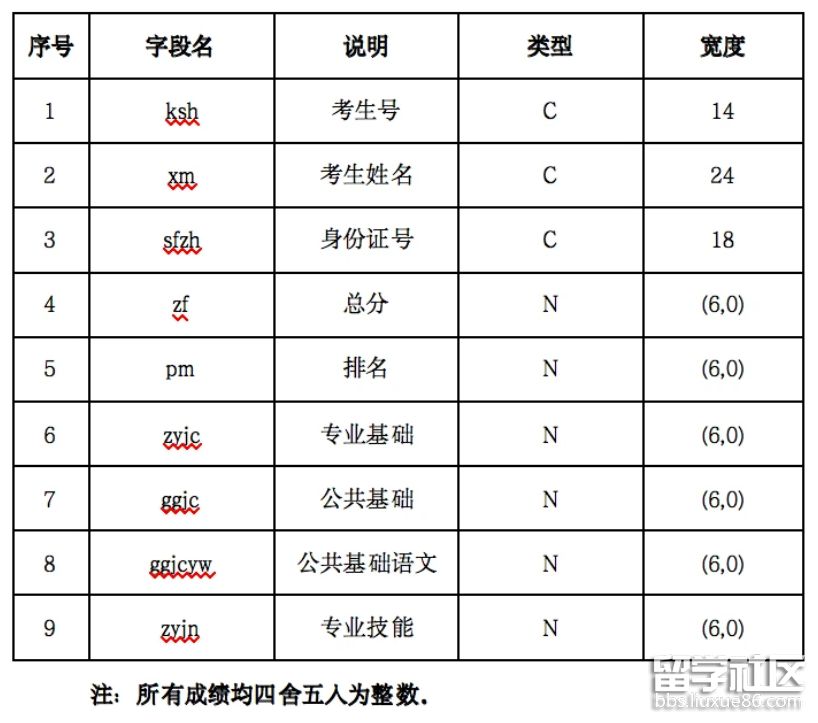 5.2023年甘肅省高等職業(yè)教育分類考試招生中職升學(xué)考試成績數(shù)據(jù)庫結(jié)構(gòu)