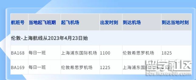 倫敦—上海:4月23日復(fù)航,之后每日一班。