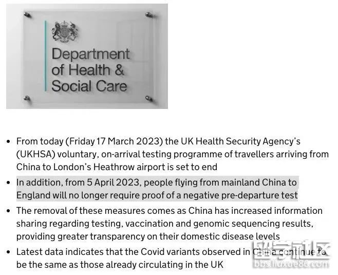 2023年3月17日,英國政府最新官宣:從4月5日起取消來自中國內(nèi)地旅客入境英國的新冠病毒核酸陰性測試結(jié)果的要求。
