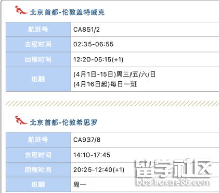 倫敦--北京:4月1日復(fù)航 航班號CA851/2;