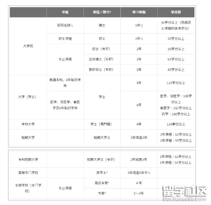大學院博士課程有可能分為前期課程(2年)和后期課程(3年)的情況。學士課程的學習年限為6年的醫(yī)學、牙醫(yī)學、獸醫(yī)學,6年制的藥學博士課程的學習年限為4年。