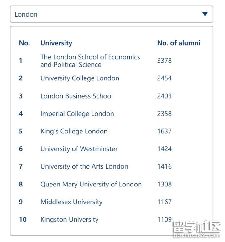 倫敦政治經(jīng)濟學(xué)院(LSE)擁有最多科技大廠的校友(3378),倫敦大學(xué)學(xué)院(UCL)倫敦商學(xué)院(LBS)其次。