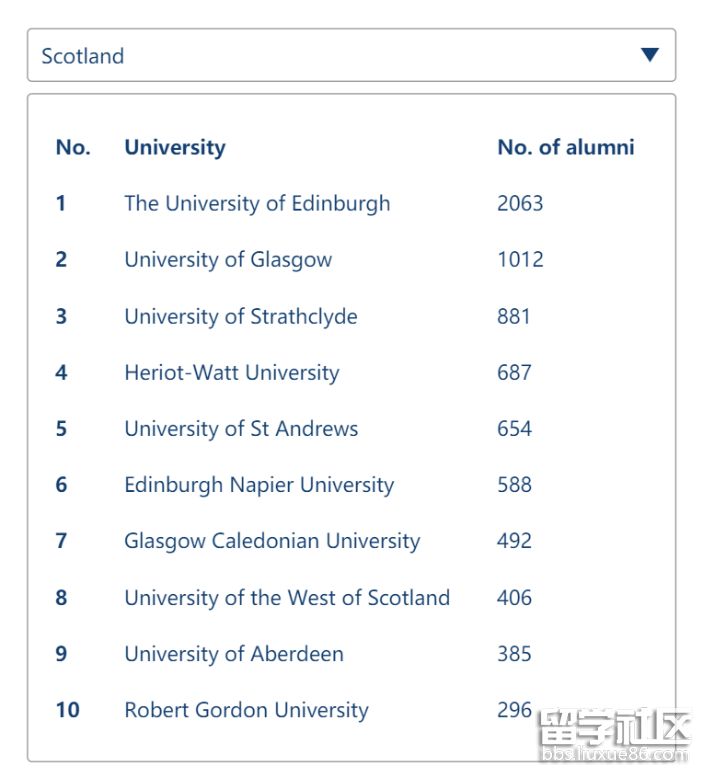 從數(shù)據(jù)來看愛丁堡大學(xué)(Edinburgh)擁有最多科技大廠的校友(2036),格拉斯哥大學(xué)(Glasgow)和思克萊德大學(xué)(Strathclyde)其次。