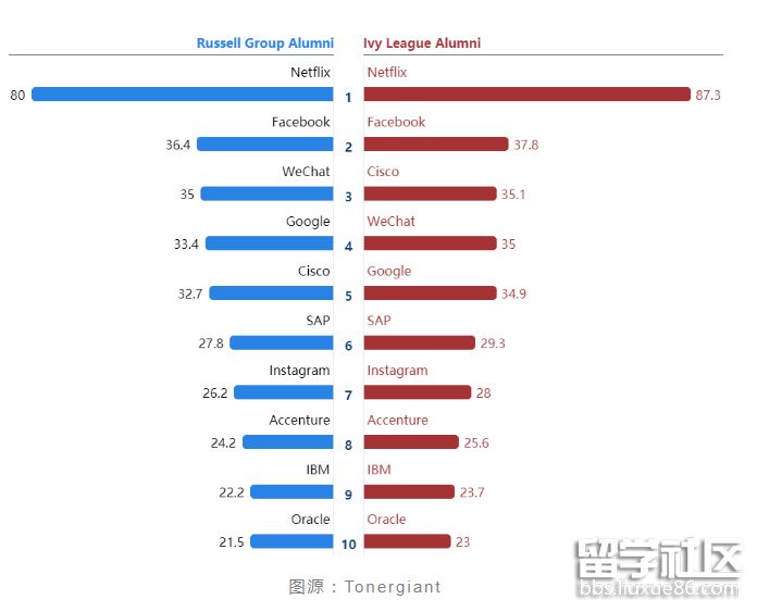 Tonergiant網(wǎng)站通過領(lǐng)英(LinkedIn),調(diào)查發(fā)現(xiàn)有501,006多名英美大學(xué)校友在包括谷歌、亞馬遜等26家科技大廠工作。