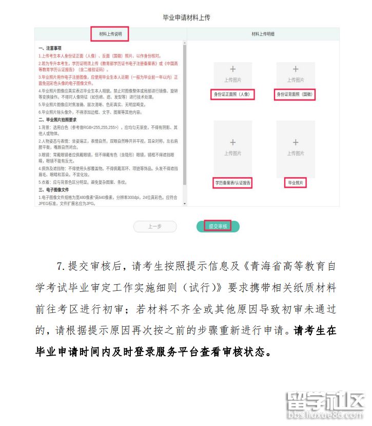 請(qǐng)考生本人在規(guī)定時(shí)間內(nèi)前往考區(qū)現(xiàn)場(chǎng)提交畢業(yè)申請(qǐng)材料并確認(rèn);未在規(guī)定時(shí)間內(nèi)前往考區(qū)現(xiàn)場(chǎng)審核的本次不再補(bǔ)辦,可申請(qǐng)下一批次畢業(yè)申請(qǐng)。
