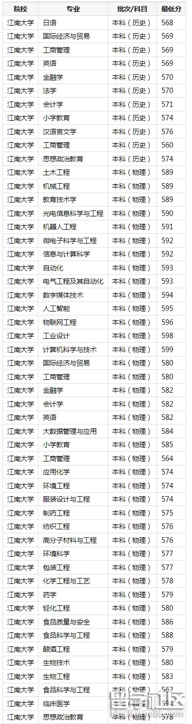 附:2022年江南大學(xué)各專業(yè)在江蘇省錄取最低分?jǐn)?shù)線一覽表
