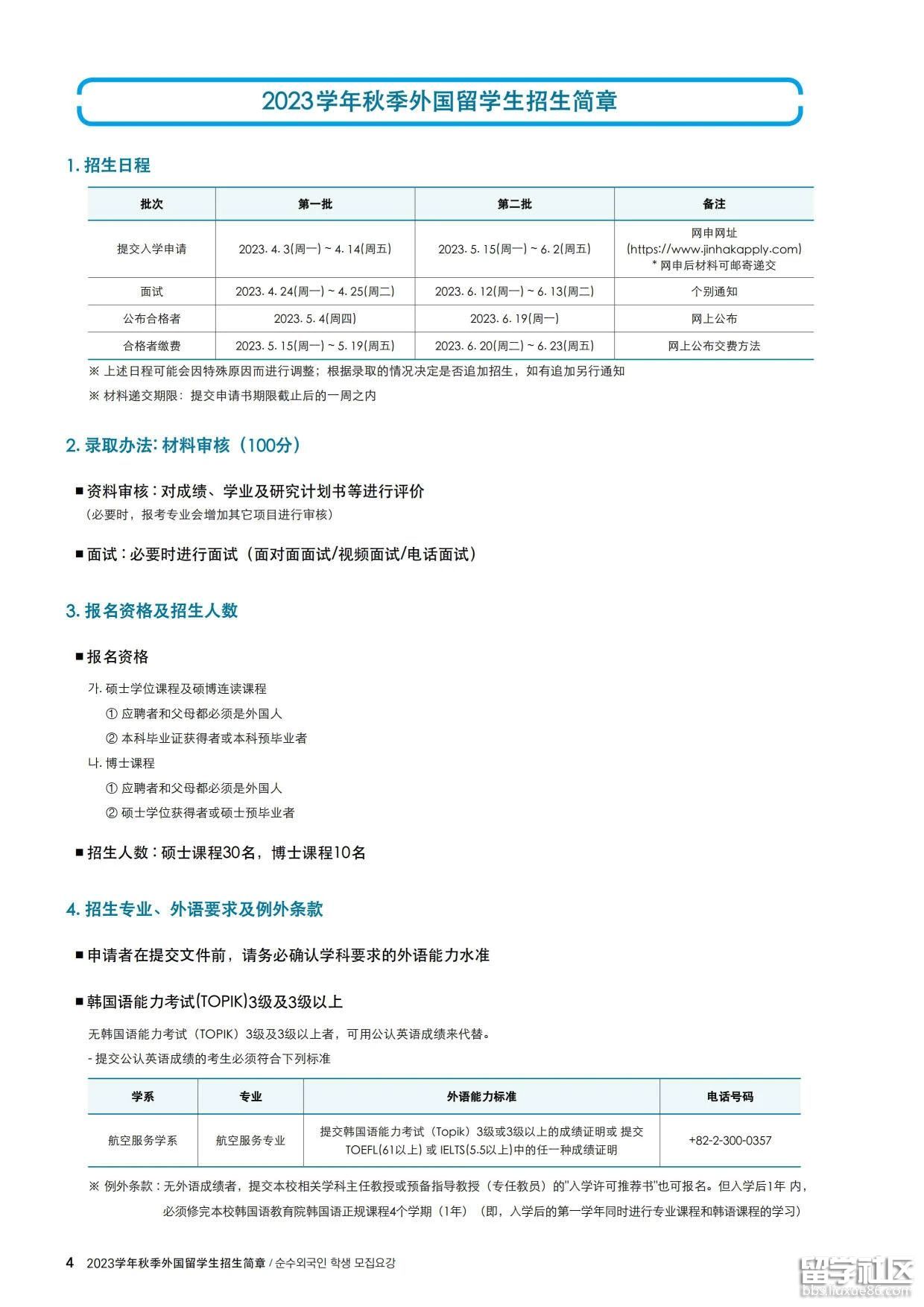 2023年9月韓國(guó)航空大學(xué)航空服務(wù)學(xué)系碩博招生簡(jiǎn)章