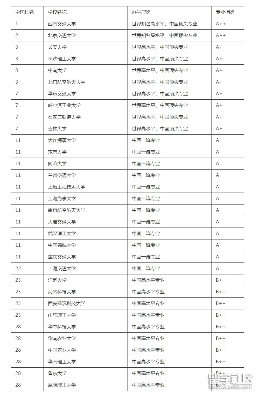 以下是交通運(yùn)輸專業(yè)大學(xué)最新排名具體情況,以供大家參考: