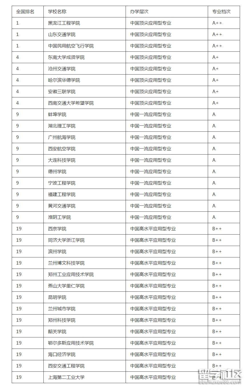 校友會(huì)中國大學(xué)一流專業(yè)排名(應(yīng)用型)"交通運(yùn)輸"專業(yè)排名一覽表