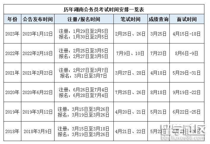 以下為近幾年湖南公務(wù)員考試時(shí)間節(jié)點(diǎn)安排,供參考。