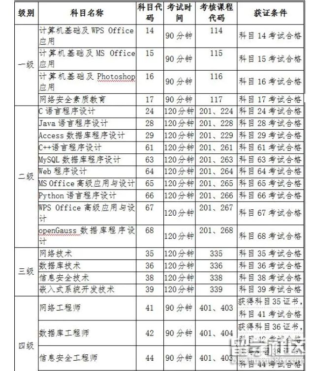 福建全國(guó)計(jì)算機(jī)等級(jí)考試科目設(shè)置及獲證條件