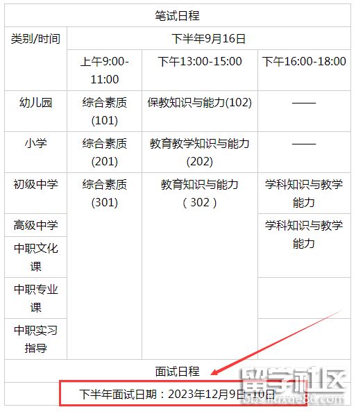 2023下半年山東教資面試時(shí)間為12月9日-10日。具體的面試時(shí)間如下表: