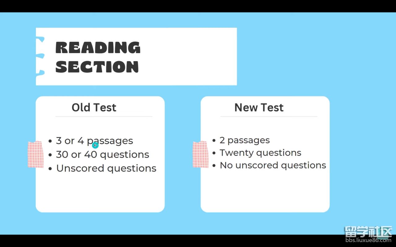 閱讀部分將從原來的 3篇減少到 2篇(共 20道題),取消加試。